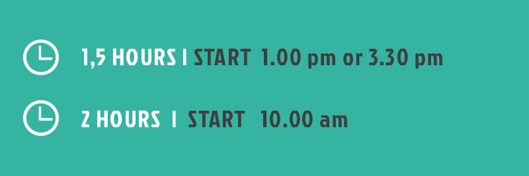 The tours take place in all weather* conditions and start with comprehensive instructions suiting your needs. Helmets are provided. For groups: We can arranange for up to 20 participants** per tour.
